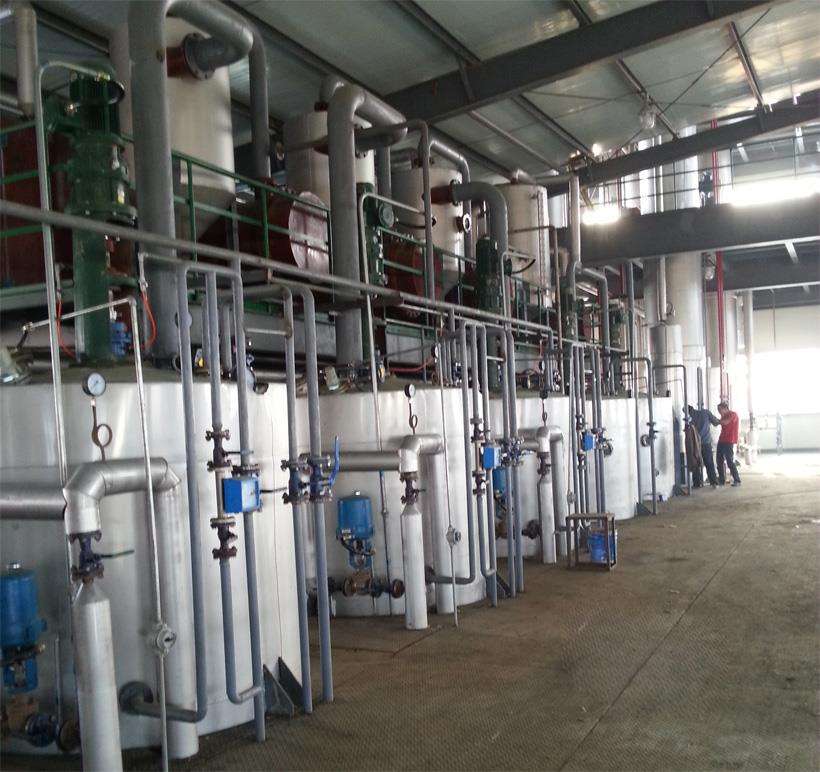 將反應(yīng)好的粗甲酯經(jīng)預(yù)熱器打入蒸餾系統(tǒng),本蒸餾系統(tǒng)采用三次蒸餾工藝,大大提高了油品質(zhì)量和得率,成品油的提取完全在高真空密閉系統(tǒng)中進(jìn)行,本系統(tǒng)設(shè)備全部為不銹鋼304材質(zhì),所以在高溫下不會氧化,使產(chǎn)品的顏色得到最佳。